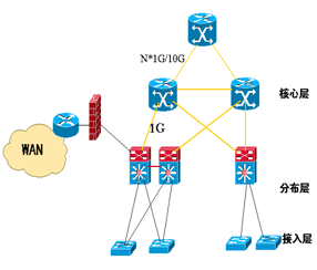 大型园区网 大型企业网络系统具有用户分布范围广、需求多样化、网络系统可靠性和扩展能力要求高等特点。为了满足大型企业网络系统的上述要求,按照模块化和层次化的方式进行设计,整个网络系统划分为核心层、分布层和接入层三个层次,采用这种设计方法可以保证整个网络系统的高性能、高可靠性和好的系统扩展性。 智能化系统admin 之前